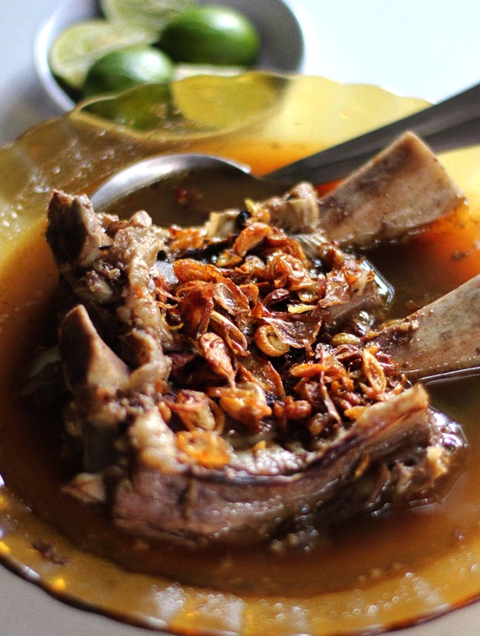 Makassar is the 5th largest city after Jakarta, Surabaya, Medan, and Bandung. Their cuisine has a degree of Dutch influence and flavours too. Sop Konro Karebosi restaurant has been around for more than 50 years and is known for the Beef Ribs. The Konro Bakar (beef ribs grilled) is a must try at this place.