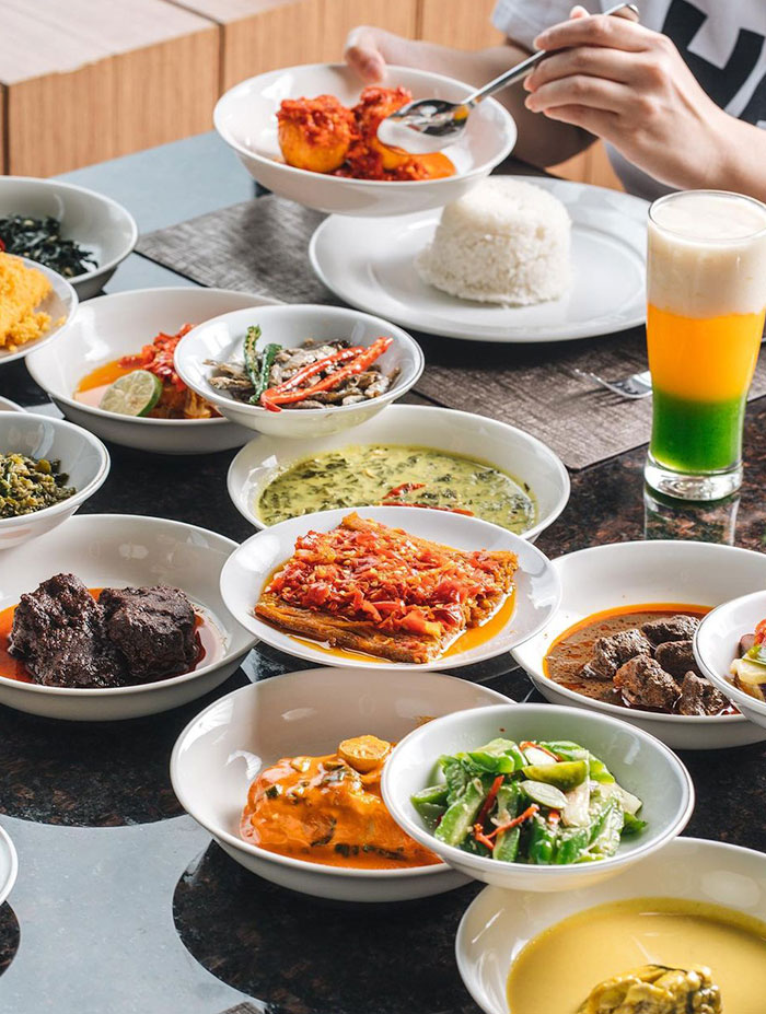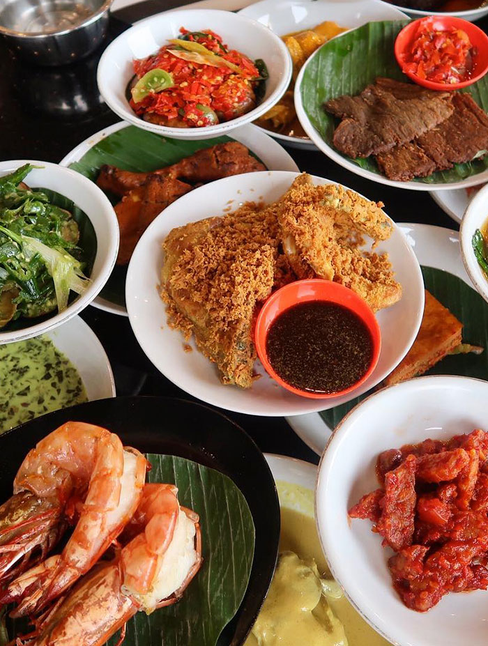 Ayam Pop, Sambal Ijo, Rendang, Ayam Gulai, Ayam Bakar, Kerupuk Kulit / Jangek on with Gulai Sauce