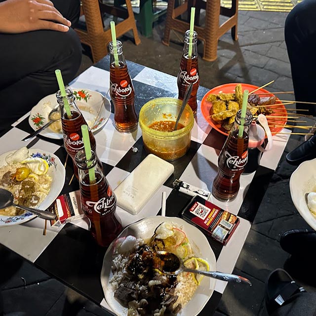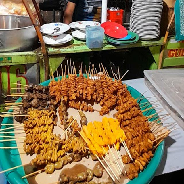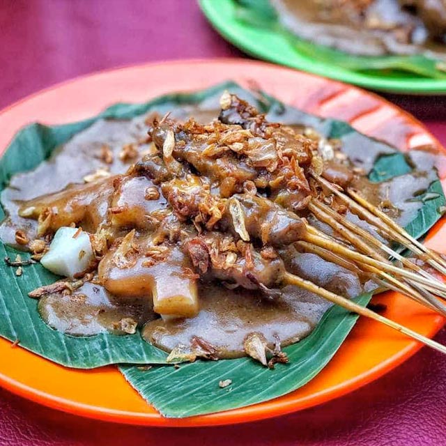 Another must try street food. Meat skewers with longtong (rice cakes), stewed with thick broth, and strong spices. Usually we order it combined with the kerupuk kulit, but it's up to your personal liking.